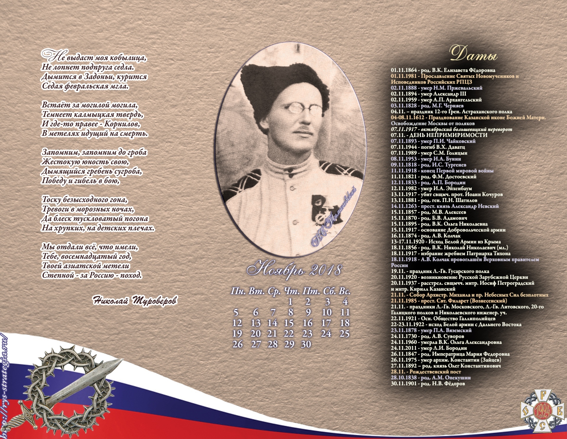 Календарь РОВСа 2018 г. выходит в формате обоев для рабочего стола в двух вариантах - для п/к и ноутбуков. Скачивайте, устанавливайте и будьте в курсе важнейших дат отечественной истории!