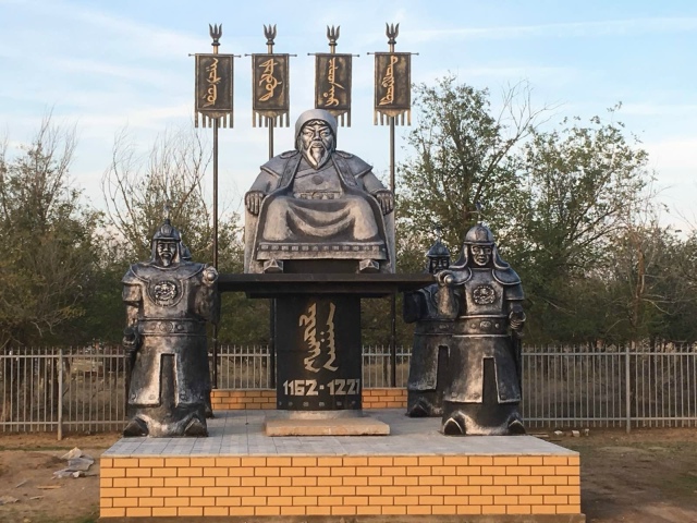 В Калмыкии в поселке Привольный Яшкульского района установили памятник Чингисхану. Торжественное открытие мемориального комплекса состоялось сегодня [октябрь 2019]. Высота скульптуры 4,5 м., вес - около 2,5 т. На основании плиты на тодо-бичг высечены годы жизни Чингисхана. Вокруг стоят фигуры воинов и флаги на флагштоках с названиями четырех монгольских племен, провозгласивших Чингисхана великим ханом. Комплекс был построен по инициативе руководства племзавода "Улан-Хееч". "Изначально эта идея принадлежала директору Пюрве Менкнасунову, после того, как Пюрви Паштаевича не стало, мы продолжили начатое им дело. Можно сказать, это было общей мечтой. Строительство велось на деньги акционерного общества и пожертвования жителей республики", - отметил гендиректор племзавода "Улан_хееч" Джангр Сангаджиев. Правда, общую сумму он не назвал, сославшись на коммерческую тайну.